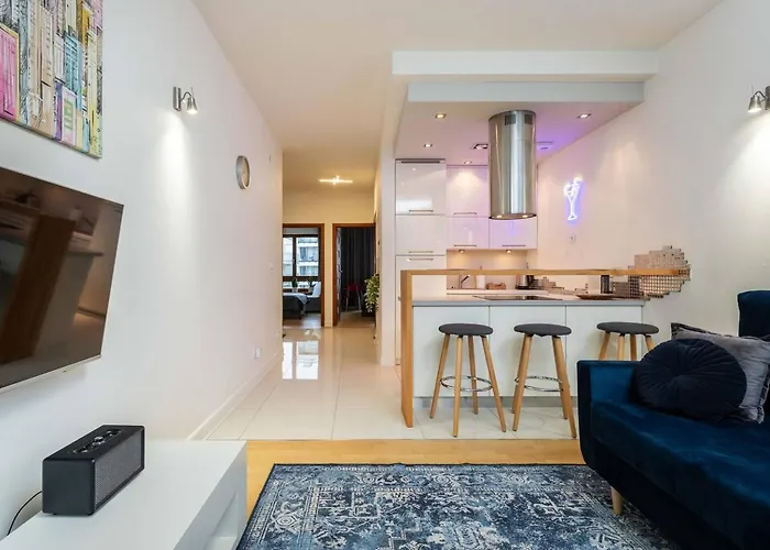 Das Urban Blue 2 Bedroom Apartment Wola Warschau liegt im Stadtteil Wola, 6 Kilometer vom Museum der polnischen Armee entfernt. Das 1-Zimmer-Apartment hat auch eine Terrasse mit Blick auf die Straße.